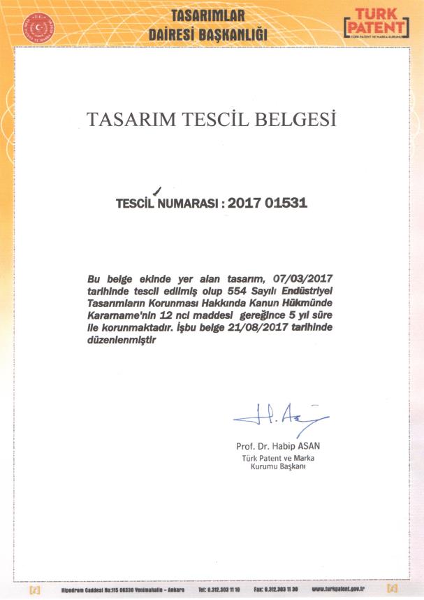 Tasarım Tescil Belgesi